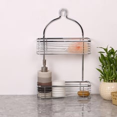 Introducing a sturdy Shower Caddy which is composed of Iron Metal. It features 2 multi-utility shelves with PVC sheet lining and is rust resistant. Hang it in anywhere in your bathroom for neat stacking of your daily hygiene knick-knacks.