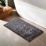 Transform your bathroom with this stylish, quick-drying polyester bath mat. Its plush fur surface offers comfort, while the anti-skid backing prevents slipping and helps keep your floors dry.