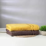 SPACES Atrium Eoss Mustard and Brown Textured Cotton Bath Towels - Set Of 2 - 70x150cm