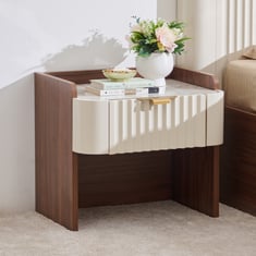 View AllView the collection NewAdd this elegant bedside table from home centre to evaluate your bedroom space. Made from pre-laminated engineered wood and is coated with glossy PU paint, a polymer-based paint that offers a smooth touch for a seamless look. This bedside table includes an external drawer, providing extra storage for books, medicines, magazines, and other items, while the top platform is ideal for night lamps, phones, and personal belongings. It also features high-quality butterfly hinges, lab-tested for performance and corrosion resistance, with an easy realignment provision for long-term use.