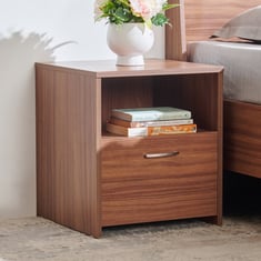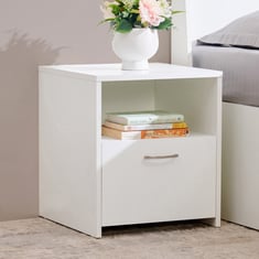 This meticulously crafted bedside table is the epitome of both style and functionality. Constructed from high-quality engineered wood with a flawless melamine finish, its smooth, grain-free surface exudes sophistication. With a convenient drawer and an open shelf, it offers ample storage for your night-time essentials, ensuring everything stays within easy reach. The spacious top platform provides the perfect spot for your night lamp, phone, or cherished personal items, adding a touch of convenience to your bedside. Whether you are curling up with a good book or reaching for your medication, this versatile bedside table has you covered. The open storage with smooth running drawers with pull out stop for easy access to essentials like mobile/books etc.