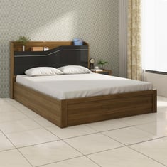 Crafted from premium quality wood, this king-size bed has been crafted to serve as the perfect solution to your bedroom woes. The bed comes with a glass headboard and hydraulic storage box that allow you to organize your bedroom essentials with ease while saving space.