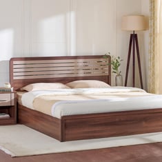 Designed to bring elegance and splendor this queen bed will transform both the ambience and aesthetic of any space. Incredibly versatile and made to stand out, this spacious and sublime range of products looks simply stunning. This bed has hybrid built-in storage beneath the bed frame offering users the convenience of organizing frequently used articles underneath 2/3rd storage accessible with a heavy-duty hydraulic lift system and less frequently used articles inside the box storage secured with top panels. Also enabled with hydraulic lift capacities ranging from 60 kgs to 125 kgs ensures lifting with utmost ease, noise-free operation, and long-term durability, adaptable to variable mattress types and thicknesses. Made with prelaminated engineered wood that is compressed with hardwood extracts possesses a stronger core with strong screw-holding capacity and is chemically treated against termites and borer infestation. The engineered wood is laminated on both surfaces by synthetic resin-impregnated base papers under the influence of heat and pressure, which gives a nice even texture of wood grain or solid matt colour. This is a cost-effective finish compared to melamine-facing.