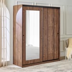 Hadley 2-Door Sliding Wardrobe with Mirror - Brown