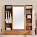 Bring elegance to your space with this wardrobe. It is made of engineered wood with 2 sliding doors with soft closed hinges and a 1-mirror front. It includes 8 shelves and 2 hanging rods for convenient storage. The door is equipped with a safety lock for added safety. It includes 2 bottom drawers on the front for added elegance. This wardrobe is melamine-finished for that refined look to match your bedroom interiors.