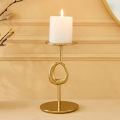 Elevate your ambience with this candle holder. Crafted from aluminium, it has a base with an organic ring-shaped detailing and a candle holder at the top. Add your favourite candle to create a stunning display for your entryway console, mantle, or dining table.