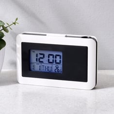 Add a hint of finesse to your living room decor with this digital clock that has been crafted from fine quality material into a contemporary design with a sturdy base that brings about a stylish yet convenient vibe to your room. This digital table clock showcases camera design while illuminating the time, date, and temperature accordingly.