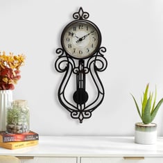 View AllView the collection NewMake your living room an aesthetic space with this antique wall clock. It flaunts an abstract design, textured surface, and pendulum for added convenience.