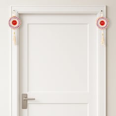 Welcome positivity with these embellished Shubh Labh reversible door latkans. Crafted from plastic, pearls, and metal, they bring festive elegance and traditional charm to your doorway.