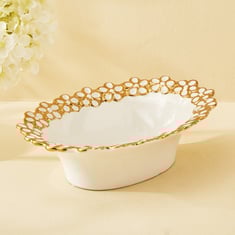 Transform your table into a canvas of elegance with this decorative platter. It is crafted from ceramic and features gleaming floral decorations. Add it as an artful centrepiece or part of a carefully curated decor.