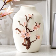 A stunning centrepiece, this vase combines classical elegance with contemporary charm. It is crafted from high-quality ceramic and showcases an urn shape. Its graceful silhouette and splendid floral patterns make it a standout addition to any room.