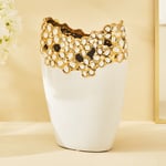 Infuse your space with floral charm and a luxe look with this vase. It features a gracefully curved silhouette crafted from high-quality ceramic, adorned with a stunning floral overlay. This vase makes an enchanting addition to your entryway console, shelf, or display cabinet.