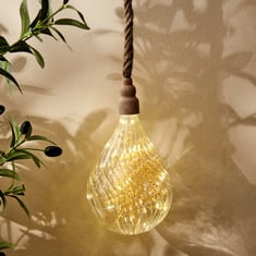 Make your home stylish and cozy with this hanging lamp from Home Centre. Made from glass and designed to suspend from the ceiling, it provides focused illumination perfect for dining areas, kitchens, or living spaces. This is operated with batteries.