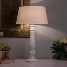 Designed with the traditional classic style, this captivating wooden table lamp is a great lighting fixture to add a beautiful and natural element to any room. A sturdy wood base in with timeless classic design, topped with a shade, casting a warm and soothing light, perfect for placing on your nightstand or side table beside sofa and bed. The round hardback shade is a crisp white linen fabric with light slubbing and a crude burlap wrap around the centre. It is made of durable wood and comes with a solid base that ensures stability and with a convenient on/off switch and 1.5 metre long wire, with tested and approved standard for perfect and safe lighting.