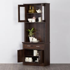 A design that exudes minimalism, this cabinet will add some luxe appeal to your living space. The attached hatch comes with shelves to showcase decorative pieces and keep your crockery with ease.