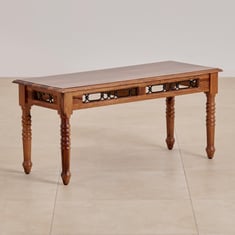 Bring home a classic design with modern touches. This dining bench adds to the functionality and decor of your space. It is made of sheesham wood for durability and strength. Turned legs and jali metal accents on the bench lend an artistic flair.