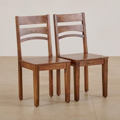 Perfect for clean, minimal spaces, this set of dining chairs is made from mango wood. It is finished with a melamine prelam to enhance the resistance to stains, scratches, moisture, and heat. This set features a sturdy seat, a backrest with a slat design and square legs. The natural grain finish fits this set of chairs into an array of decor schemes.