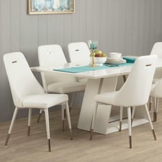 Designed with metal base with gold-plated legs, this set of dining chairs comes with high-density foam to provide comfortable seating experience.