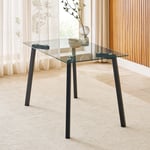 Add a touch of modern elegance to your space with this dining table. The rectangular tempered glass top is heat, pressure, and compression resistant. The legs are made of high gauge, non-magnetic mild steel for durability. This table is designed to seat up to 4 people.