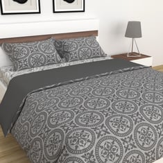 Marlin Grey Printed Cotton Double Bed-In-A-Bag Set - 4Pcs