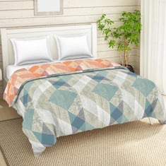SPACES Essentials Blue Geometric Printed Cotton King Quilt - 224x270cm