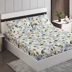 Transform your bedroom into a cosy retreat with this queen bedsheet set, the perfect combination of quality, style, and comfort. Crafted from soft polyester fabric with a luxurious 100 GSM, it promises a blissful night's sleep. The smooth texture and lightweight feel ensure ultimate cosiness while adding a touch of elegance to your bedding ensemble. The vibrant floral printed design adds a pop of personality to your sleeping space, making it truly inviting. This set includes a flat sheet and two matching pillowcase for a coordinated look. Treat yourself to the convenience of easy care and maintenance with this comfortable bedsheet.