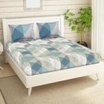 SPACES Essentials Blue Geometric Printed Cotton Super King Bedsheet Set - 274x274cm - 3Pcs