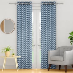 PORTICO Waves Curtains Blue Printed Door Curtain - 130 x 225 cm