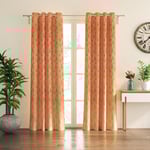 Spruce up your decor by adding this pair of curtains. It is made of polyester and features a jacquard pattern and nature-inspired prints. The light filtering feature provides a semblance of privacy while letting natural light inside. The chrome eyelets ensure easy hanging.
