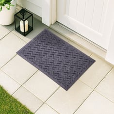 Combine style and practicality with this durable rubber base doormat. Featuring a modern chevron design, it efficiently traps dirt, dust and moisture. Built to withstand all weather and easy to maintain, it ensures long-lasting use indoors or outdoors while adding an elegant touch to any space.
