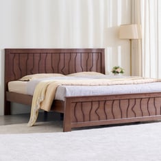 Relax and enjoy restful sleep on this queen bed from Home Centre. Crafted from kiln-dried mahogany wood, it is chemically treated for stability, minimizing expansion or contraction with seasonal changes which is perfect for indoor use. The matte finish, achieved with polymer-based PU paint, offers a smooth texture and subtle sheen. This blend of durable mahogany and elegant matte finish creates a stylish, lasting addition to your space.