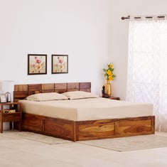 Helios Rubix Sheesham Wood King Bed with Box Storage - Brown