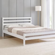 Combining timeless elegance with exceptional comfort, this queen-size bed enhances any bedroom while offering long-lasting durability. Crafted from durable rubber wood with a smooth lacquer finish, it features a ladder-style headboard for a clean, modern look. The 15mm thick mattress resting panel ensures even load distribution, providing consistent comfort for a restful sleep.