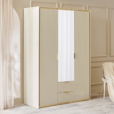 Modern Radiance 3-Door Wardrobe with Mirror and Drawers - Cream