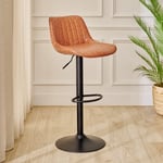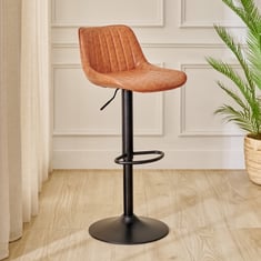 Ideal for those seeking both comfort and style, this bar chair offers a luxe touch to your home bar space. It features a durable leatherette (PVC) upholstery with stitch detailing and is resistant to spills and liquids, ensuring long-lasting performance. Its mild steel base, crafted from high gauge, non-magnetic steel, delivers exceptional strength and durability. The footrest ensures convenience, while the adjustable height offers custom comfort.
