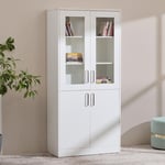 View AllView the collection NewIntroducing this 2-door book cabinet, a stylish addition to your home library or office space. Crafted from durable engineered wood, this book cabinet boasts a sturdy core with strong screw-holding capacity, ensuring long-lasting stability. Its sleek white finish and melamine coating provide superior resistance against scratches, dents, and stains, maintaining its pristine appearance for years to come. With five spacious shelves and glass doors, this bookshelf offers ample storage while adding a touch of sophistication to any room. Tested for durability and stability, each shelf can bear up to 7 kg of weight, making it ideal for organising books, decor, and more. Complete with high-quality butterfly hinges and tempered clear glass, this bookshelf combines functionality with elegance, perfect for showcasing your book collection in style.