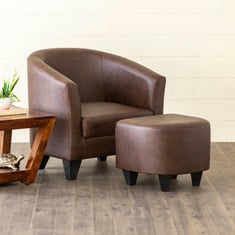 Seaford Faux Leather 1-Seater Sofa Chair with Ottoman - Brown