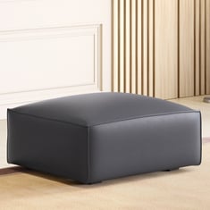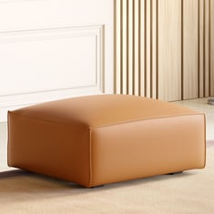 View AllView the collection NewBring this ottoman from Home Centre which is sleek, elegant, and cozy. Made from pinewood, which is pretreated against moisture and wood infestation, this wood is stable, elastic, lightweight, economical, and durable, making it ideal for frame construction. This is upholstered from bovine leather on body touching parts and with faux leather on the rest of the parts. Bovine leather being a natural material, it is a much more breathable, supple material which provides warmth to the human body. The base support is equipped with webbing and zigzag springs to support the seat cushion. This modular ottoman allows customers to create their combinations with this collection or can be used as a centrepiece in your living room.