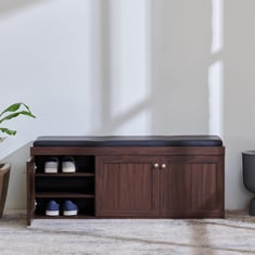 Lewis 18 Pairs Shoe Cabinet with Cushion Seat - Brown