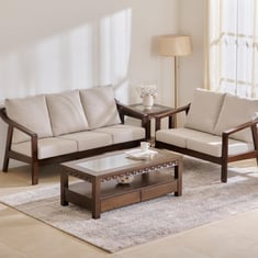 Nest in the plush comfort of this 3+2 seater sofa that is upholstered in anti-bacterial fabric and crafted in rubber wood that ensures longer life and easy maintenance. It is made in a sophisticated factory with state-of-the-art machinery for durability and a consistent finish. An elegant designer fabric sofa with the plushness of superior comfort and accentuated looks thanks to the elite combination of plain and printed fabric designs. This sofa adds a breath of freshness to your living space with its artistic shape and ageless looks.