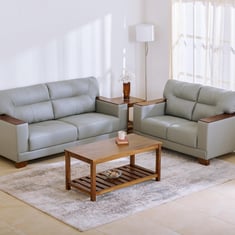 View AllView the collection NewAdd a fine touch to your living room with this sofa set. This set comes with one 3-seater sofa and one 2-seater sofa, which adds a content realm to your living space. The sofa upholstery is made from plush leather on the upper body and faux leather on the rest of the part. The leather has a lustrous texture with visible embossing, which feels both soft and elemental. The primary material of this sofa is made of pinewood, which is a softwood with a great deal of stiffness and resistance to shock and is easy to work with. It is a lighter wood with a smooth finish ensuring consistency and an aesthetic good look and makes the furniture lightweight for easy portability. Due to its composite nature, it is much less likely than conventional lumber to warp, twist, bow, or shrink, hence used as connecting member within the sofa frame while construction. This three-seater sofa is of high tensile strength and easy cleanability. It is much more affordable and last longer.