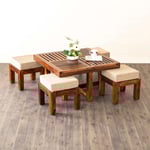 Helios Jolly Sheesham Wood Coffee Table with Stools - Brown