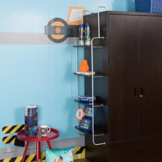 Hang on to the Side Hanger that is made of metal with silver powder coating. It can be used within a wardrobe or affixed on a wall.