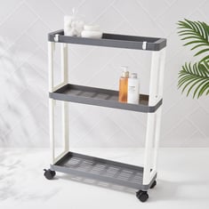 Organize your space effortlessly with this sleek 3-tier storage shelf. Crafted from durable polypropylene, it offers both strength and style, perfect for any room. The smooth rolling wheels ensure easy mobility, while the open-shelf design provides convenient access to everyday essentials. Ideal for bathrooms, kitchens, or utility spaces, this versatile shelf helps keep your home tidy and clutter-free.