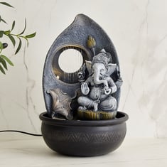 Enhance your decor with this beautifully crafted Ganesha water fountain, made from durable polyresin and plastic. Its serene design and flowing water bring a peaceful, spiritual ambience to any space.