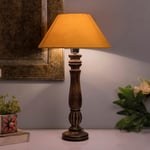 Designed in the traditional classic style, this captivating wooden table lamp is a great lighting fixture to add a beautiful and natural element to any room. A sturdy wood base in an antique finish is topped with a shade, and it casts a warm and soothing light, perfect for placing on your nightstand or side table beside a sofa or bed. The round hardback shade has a crisp linen fabric with light slubbing and a crude burlap wrap around the centre. It is made of durable wood and comes with a solid base that ensures stability, a convenient on/off switch, and a 1.5-meter-long wire with tested and approved standards for perfect and safe lighting.