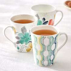 Corsica Mandarin Set of 3 Bone China Printed Mugs - 340ml