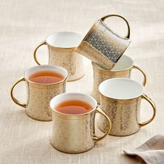 Ebony Classic Director Set of 6 Bone China Printed Coffee Mugs - 200ml