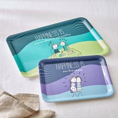 Melina Happiness Set of 2 Melamine Printed Serving Trays