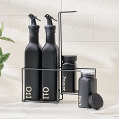 - Product : 2 Oil Dispensers, Salt and Pepper Shakers, 1 Stand